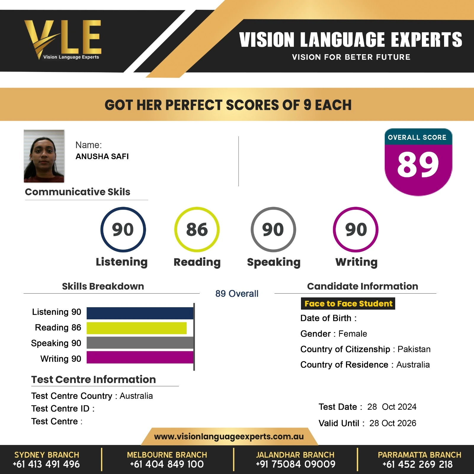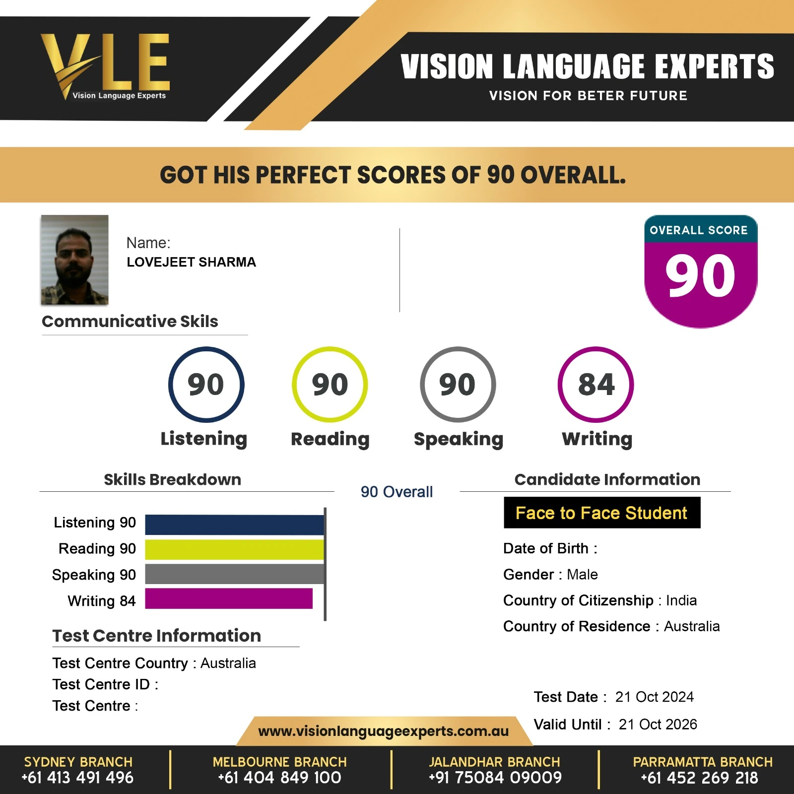 Best PTE, OET, NAATI & IELTS Coaching Classes in Australia. Attend a FREE TRIAL class at Vision Language Experts and enroll with confidence. We are so confident that we have launched first time 1 day trial with no obligation to pay. We will work alongside and assist you in getting your desired scores. Register now and take a step forward towards your permanent pathway. Read More